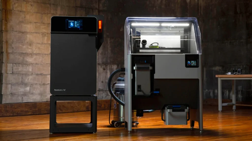 Láser que sinteriza polvo de polímero, creando piezas sólidas, complejas y duraderas sin necesidad de soportes.